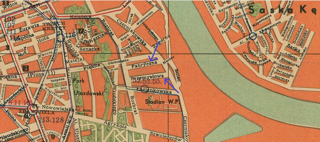 Janusz walczy, umiera i zostaje tymczasowo pochowany niedaleko domu w którym mieszkał. Ulice Fabryczna ( miejsce zamieszkania) i Przemysłowa (miejsce, gdzie został ranny, lokalizacja „Blaszanki” i miejsce pochówku) leżą blisko siebie. Obrazuje to mapa Warszawy z 1946 roku.