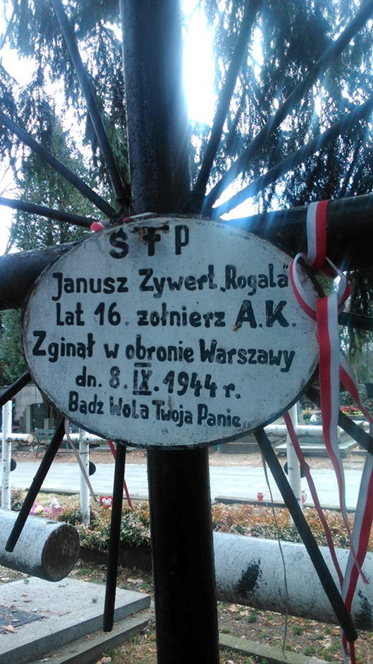 „Janusz 1 sierpnia 1944r. poszedł do powstania pobłogosławiony przez sąsiadkę, panią Woroniczową, bo w mieszkaniu już rodziny nie było. Walczył pod pseudonimem „Rogala” na Czerniakowie i Mokotowie w Zgrupowaniu „Kryśka” i prawdopodobnie w Pułku „Baszta”. Świadkowie, z którymi wuj Kazimierz rozmawiał, nie mieli słów na wyrażenie pochwał pod jego adresem. Dowodem są kartki napisane z Częstochowy przez wujka Kazimierza Gilewskiego i ks. Mariana Rzeszewskiego. Oni, dorośli mieli wyrzuty sumienia, że nie walczyli, a Janusz za nich spełnił patriotyczny obowiązek”.