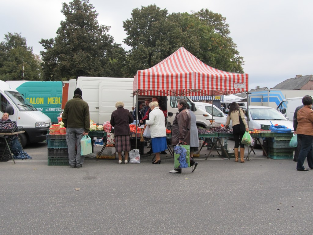 Dniem targowym tak jak dzisiaj była środa… – wspominała pani Grażyna w rozmowie ze mną w 2015 roku Na Dużym Rynku targowisko pełne różności. Co miesiąc odbywał się ogromny jarmark. – Święto Dyszla, mówili. Piekarz sprzedawał wszelkie pieczywo, a obok był stół i samowar. Ludzie siadali, jedli bułki i popijali je herbatą. A na Długim Rynku , w miejscu gdzie dzisiaj jest przystanek autobusowy, mieściło się tzw. Końskie Targowisko, na którym sprzedawano konie, świnie i bydło. Tam wszystkim strasznie dokuczały gzy!