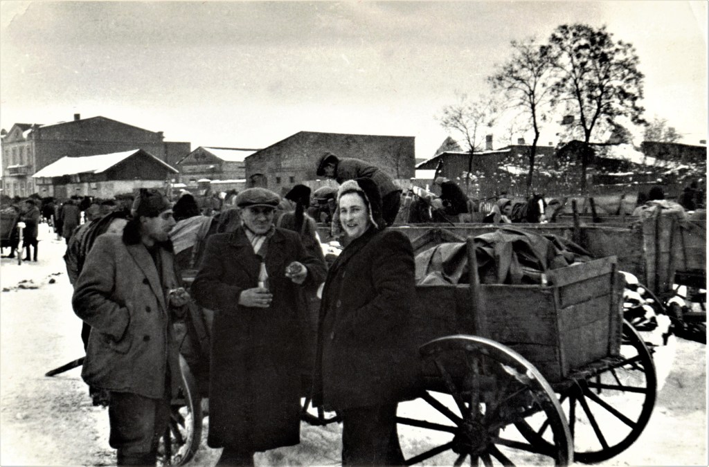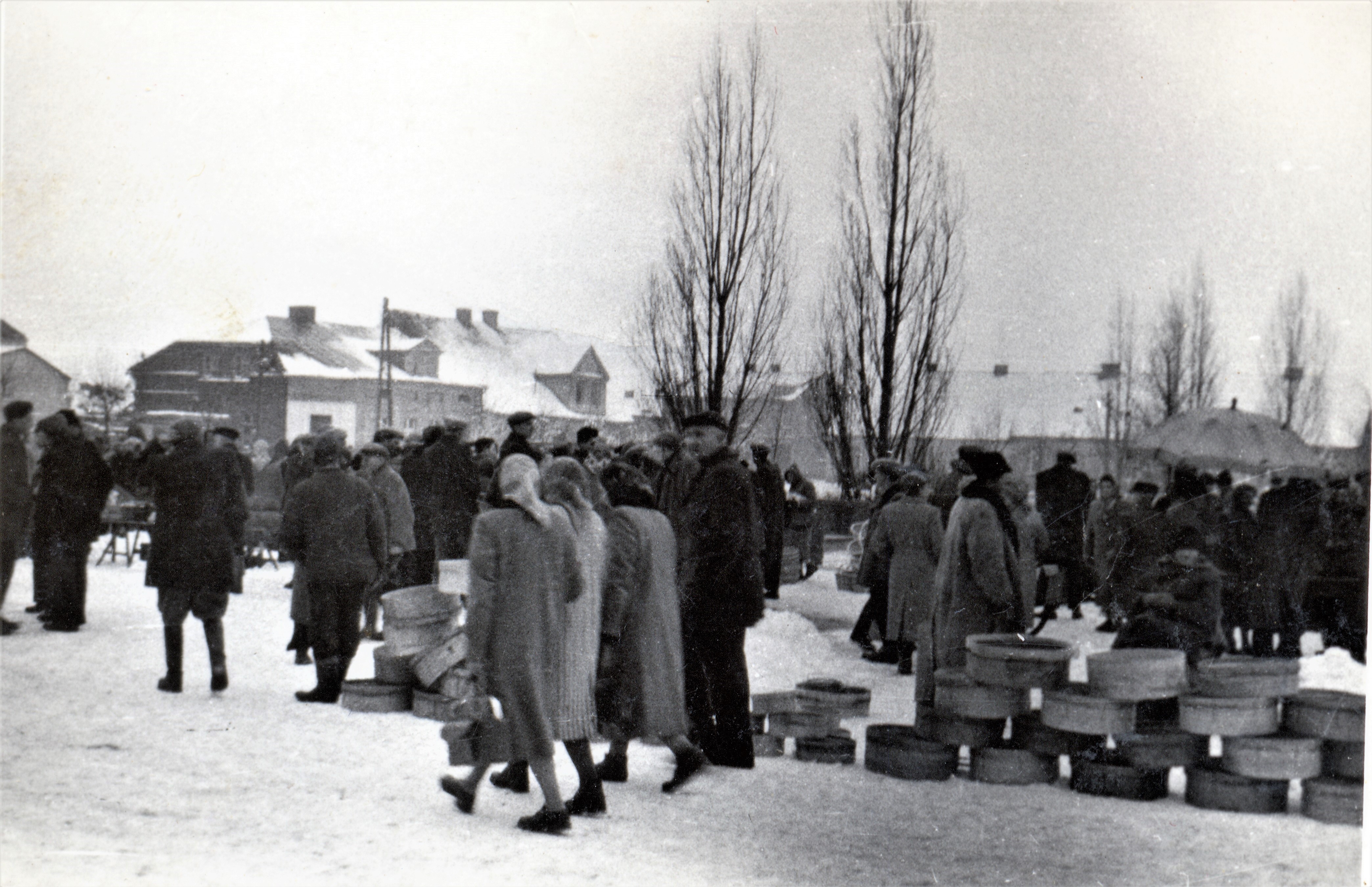 A wozów! Ulice, targowisko zawalone. Przyjeżdżali z Kalisza, Stawiszyna, Koła z serami szwajcarskimi, [kiedyś] od nich wzięliśmy jeden kwadratowy, dobry.