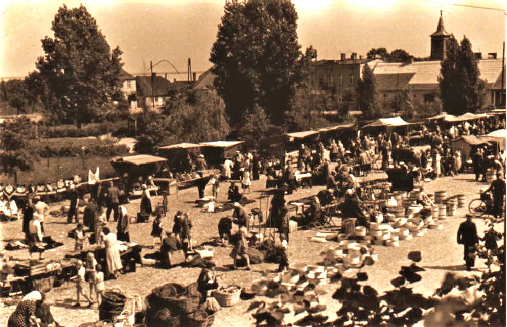 Długi Rynek, tam gdzie Plac POW i teren przed szkołą to był targ zwierzęcy, kozy, krowy, cielaki, świniaki. Ziemniaki – hurtowo lub wozem, cebula, drewno, węgiel – artykuły hurtowe.