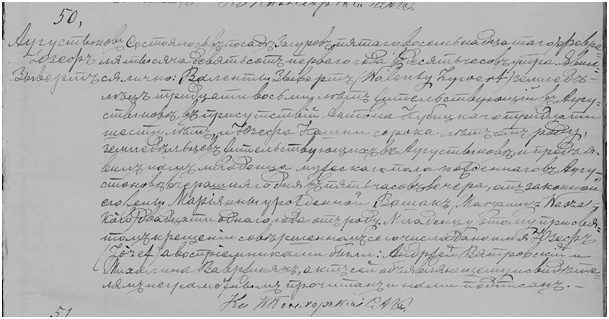 Działo się 5/18 lutego 1901 roku w Zagórowie o godzinie 10.00 rano. Stawili się Walenty Zywert, rolnik, lat 38 mieszkający w Augustynowie w obecności Antona Kubickiego, lat 36 i Józefa Kaszni (?), lat 40 , rolników mieszkających w Augustynowie i okazali nam dziecię płci męskiej urodzone w Augustynowie w dniu wczorajszym o godzinie 17.00 z prawowitej małżonki Marianny z domu Waszak lat 21 mającej. Dziecku na chrzcie nadano imię Józef, a świadkami byli Andrzej Wiatrowski i Michalina Wawrzyniak. Akt ten stawającym i niepiśmiennym przeczytany został i przez nas podpisany. ks. K. Pęcherski