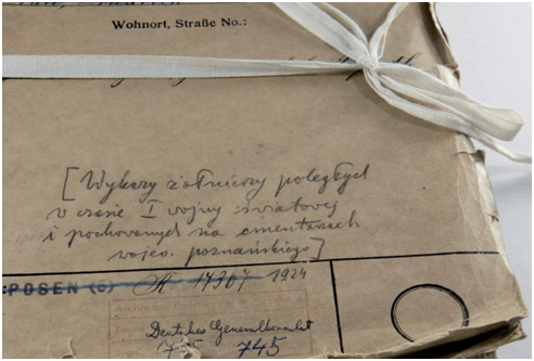 Fragment powyższego opracowania powstał na podstawie różnych zgromadzonych i zachowanych dokumentów : „Kompleksowy wykaz żołnierzy pochowanych na terenie Wielkopolski jest efektem kilkuletniej kwerendy prowadzonej w archiwach państwowych w Gnieźnie, Kaliszu, Koninie, Lesznie, Pile i Poznaniu, obejmujących swym zasobem Wielkopolskę. Jest to odzwierciedlenie ewidencji archiwalnej, dotyczącej pochówków żołnierzy i powstańców z lat 1914-1921, przechowywanej w tych instytucjach”.