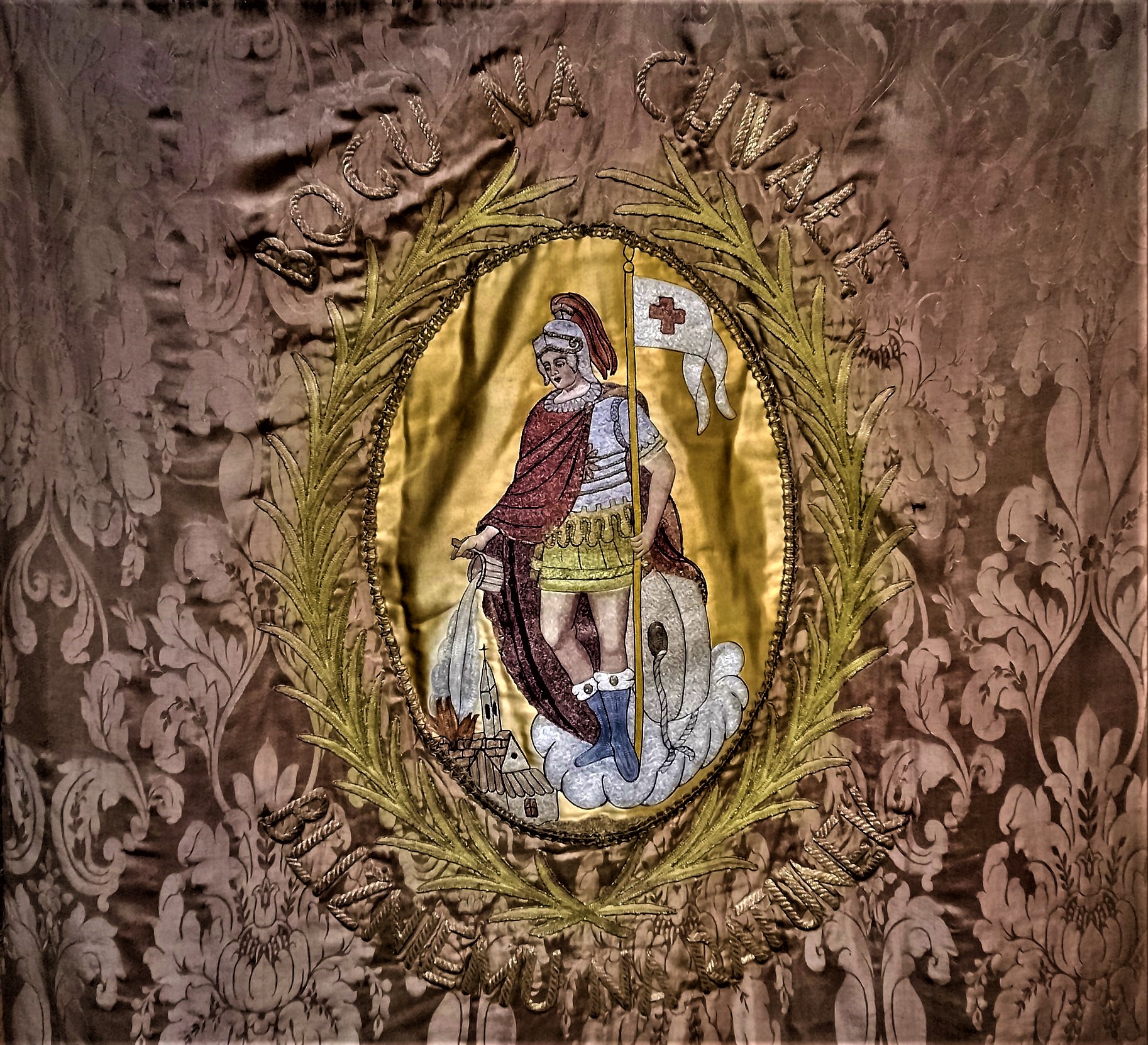Na jednej stronie sztandaru wyhaftowany jest wizerunek św. Floriana, patrona wykonawców zawodów wiążących się z ogniem: w tym oczywiście strażaków. Wizerunek okala hasło: „Bogu na chwałę, bliźnim na ratunek”. Z drugiej strony w centralnym punkcie biały orzeł w koronie, wokół napis: Ochotnicza Straż Pożarna w Zagórowie i daty: 1900 – 1939.