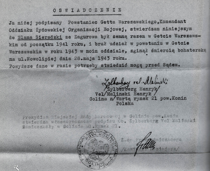 Po ukończeniu szkoły podstawowej w Zagórowie, Mieczysław Sieradzki został przeniesiony do szkoły średniej w Kaliszu, gdzie miał większe szanse na zdobycie lepszej edukacji. Kiedy wybuchła II wojna światowa, jego matka Pola Sieradzka, nie mając najmniejszych wątpliwości jakie jest zagrożenie dla żydów od strony niemieckiej, postanowiła wziąść swoich dwóch synów i ewakuowała się na tereny zajęte przez Rosjan. Nie była to łatwa podróż, poprzez Rumunię aż na Litwę, ale po wielu tygodniach tułaczki osiągnęli w końcu względny spokoj i bezpieczeństwo. Jej mąż Szlama początkowo podróżował razem z rodziną, ale w końcu odmówił wyjazdu, prawdopodobnie wykorzystując ten moment żeby odseparować się od żony. Pozostał w okupowanej Polsce, do 1943 roku mieszkał w Warszawie. Był członkiem Żydowskiej Organizacji Bojowej, zginął w powstaniu w Gettcie Warszawskim 28 maja 1943 roku.