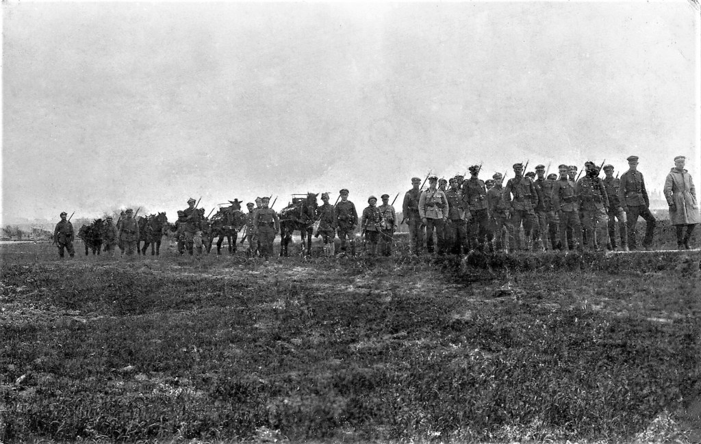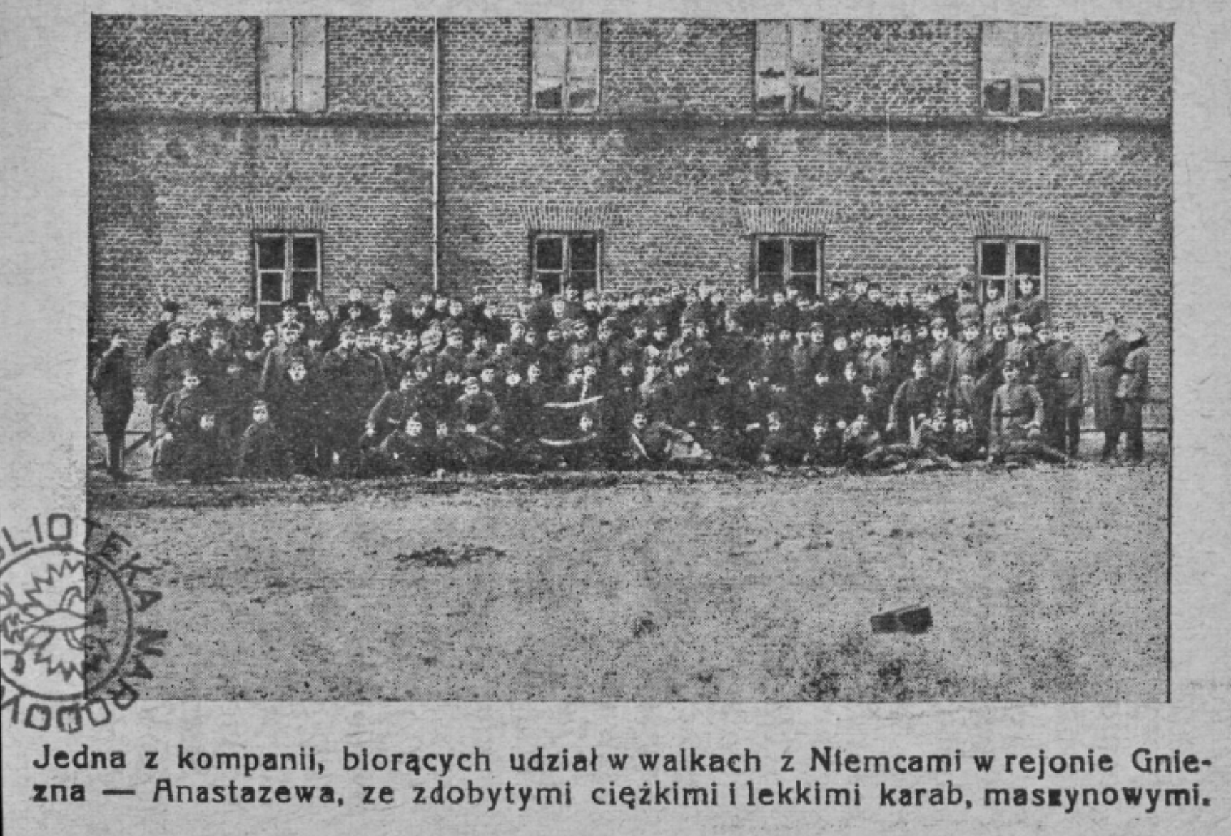 29 Pułk Piechoty Ziemi Kaliskiej 12 Kompania 3 Baonu po zdobyciu karabinów maszynowych po bitwie z Niemcami pod Anastazewem koło Powidza- 3 karabin od lewej trzyma Franciszek Plucinski z Zagórowa.