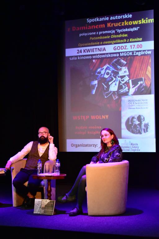 24 kwietnia odbyło się w MGOK spotkanie autorskie z Damianem Kruczkowskim połączone z promocją książki „Potomkowie Olendrów. Opowiadania o ewangelikach z Konina”. Wydarzenie zorganizowały zespoły MGOK oraz Biblioteka Publiczna Miasta i Gminy Zagórów. Rozmowę z autorem przeprowadziła Katarzyna Połom, bibliotekarka i prowadząca portal internetowy Zagórów – Miejsce z Historią.