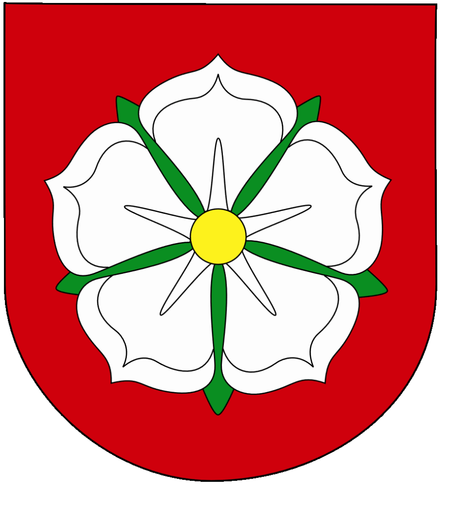 W polu czerwonym gotyckiej /hiszpańskiej/ tarczy herbowej pięciopłatkowa srebrna /biała/ róża heraldyczna o złotym /żółtym/ dnie kielicha i zielonych listkach między płatkami.